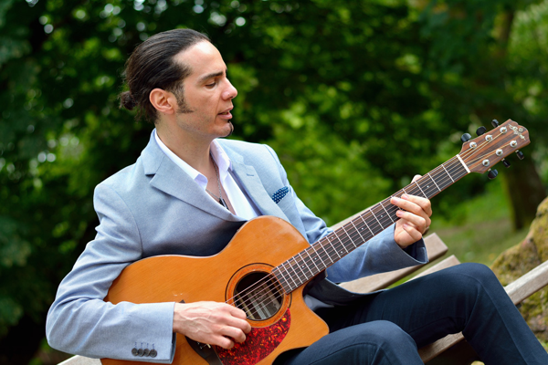 Sein virtuoses Gitarrenspiel und seine rauchige Stimme entführen in seine Welt des Jazz, Swing, Chanson française und Bossa Nova.